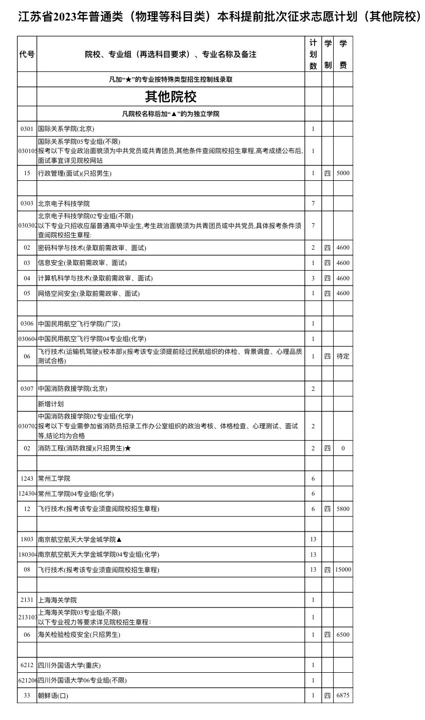 江蘇省2023年普通類(物理等科目類)本科提前批次征求志 愿計(jì)劃(其他院校).xls