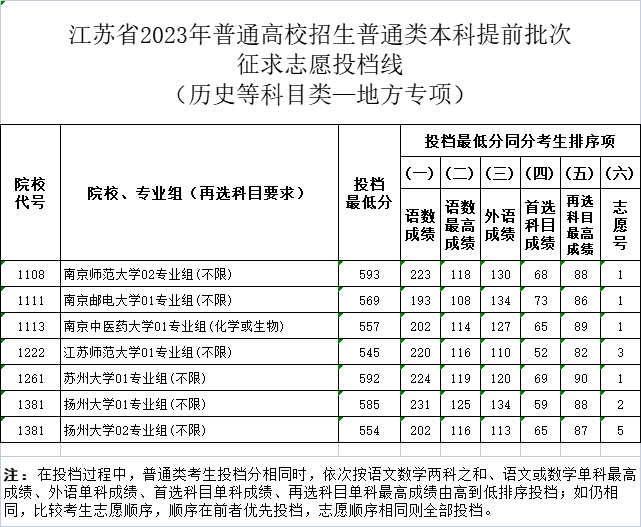 江蘇2023年普通類本科提前批征求志 愿投檔線(地方專項(xiàng)計(jì)劃)