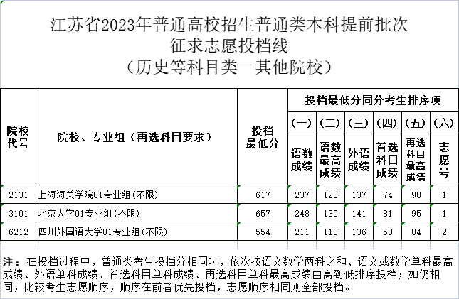 江蘇省2023年普通類本科提前批次征求志愿投檔線出爐了,報(bào)考相關(guān)院校征平志愿的考生家長快來看看吧。