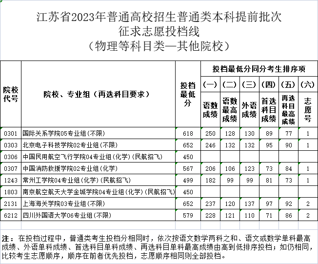江蘇省2023年普通類本科提前批次征求志愿投檔線(其他院校)出爐了,報考其他院校征平志愿的考生家長快來看看吧。