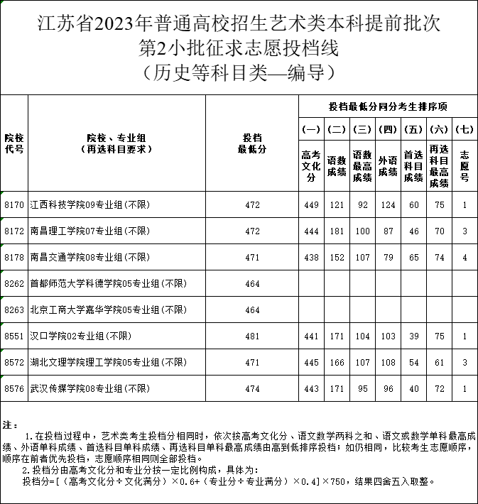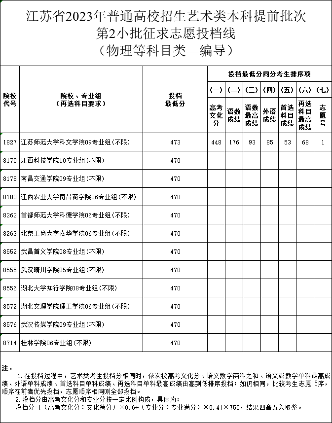 江蘇省2023年普通高校招生藝術(shù)類本科提前批次第2小批征求志愿投檔線出爐了,報考藝術(shù)類征平志愿的考生家長快來看看吧。