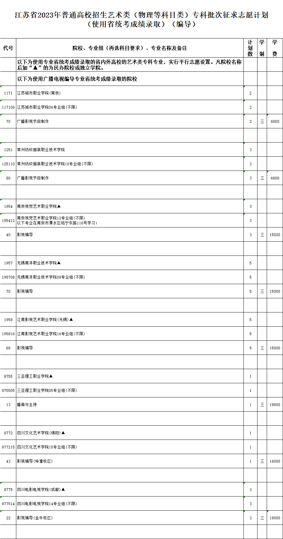 江蘇省2023年普通高校招生藝術(shù)類??婆握髑?a target="_blank" style="color: orange;">志愿計劃,趕緊來看看吧!今日9:00至15:00填報藝術(shù)類??婆握髌?a target="_blank" style="color: orange;">志愿,大家抓緊時間哦。