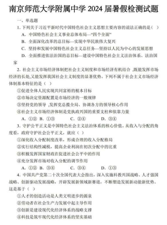 今日分享的試卷是【南京師范大學(xué)附屬中學(xué)2024屆暑假檢測(cè)】語(yǔ)文、英語(yǔ)、物理、生物、政治、日語(yǔ)6科試題+答案,趕快來(lái)下載打印給孩子刷題用吧。