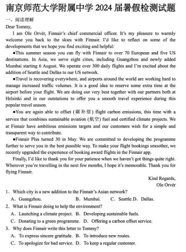 由于篇幅原因,各位家長(zhǎng)和考生可以關(guān)注【江蘇升學(xué)直通車(chē)】微信公眾號(hào),在會(huì)話(huà)框輸入【24暑期檢測(cè)】即可領(lǐng)取完整版試卷及答案哦!