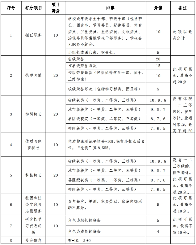 《江蘇省普通高中學生綜合素質(zhì)評價表》評分標準