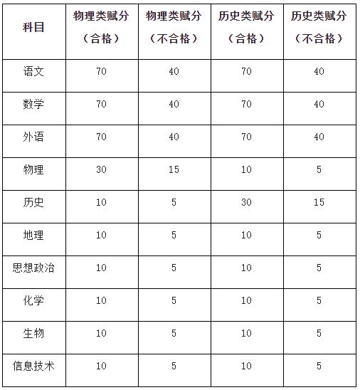 ?。?)折算分值:以江蘇省普通高中學(xué)業(yè)水平合格性考試結(jié)果為賦分依據(jù),折合總分300分。具體賦分辦法見下表: