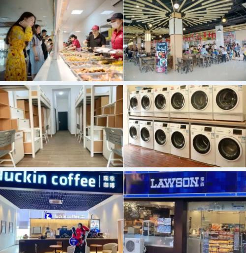 學生公寓均配有空調、網絡接口(每人1個)等設備,公寓區(qū)浴室、理發(fā)店、醫(yī)務室、超市、銀行(建行、工行自動取款機)、書店、網絡室等生活設施齊全,生活條件舒適。學生公寓實施統(tǒng)一化管理,設有目前國內最先進的門禁系統(tǒng)和技防監(jiān)控裝置,有效保證了學生的人身和財產安全。