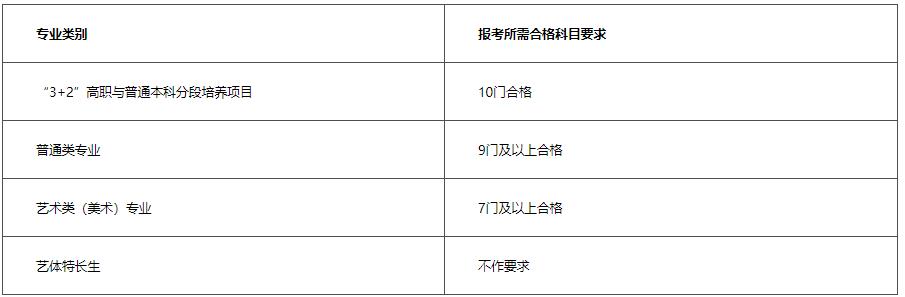1.普通類專業(yè)校測成績不低于100分,藝術(shù)類(美術(shù))專業(yè)省統(tǒng)考成績不低于150分。(不含藝體特長生)