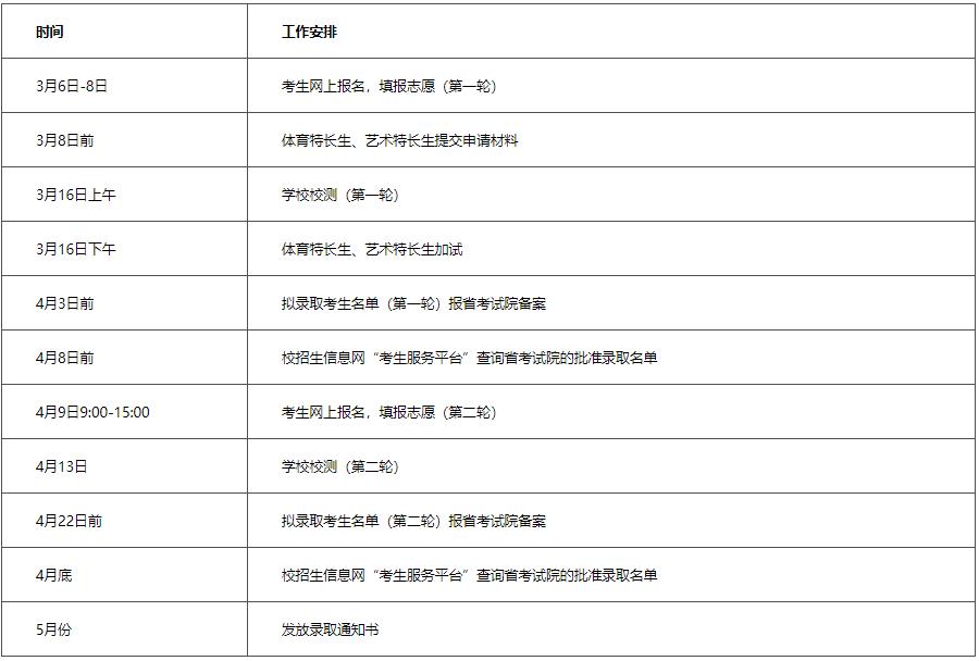 1.報名時間:第一輪志愿填報時間:2024年3月6日-8日,填報截止時間為3月8日17:00;第二輪志愿填報時間:2024年4月9日9:00至15:00。如第一輪已完成招生計劃,將不再接受第二輪申請報名。