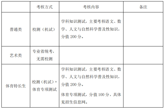普通類考生采用“校測(cè)成績(jī)+學(xué)業(yè)水平合格性考試成績(jī)折算分”,從高到低錄取。