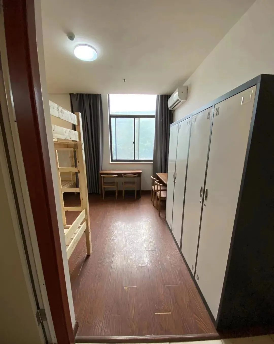 統(tǒng)一安排校外住宿,學(xué)生公寓距離學(xué)校2公里左右,門口就有公交直達(dá)學(xué)校,通勤很方便,宿舍四人間,有空調(diào),洗衣機(jī),熱水器獨(dú)立衛(wèi)生間,住宿費(fèi)3500/年。