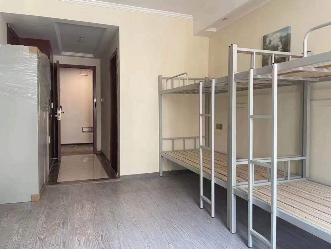 校內(nèi)住宿:六人間,四人住,上下鋪,公共衛(wèi)浴,有空調(diào),洗衣機(jī)