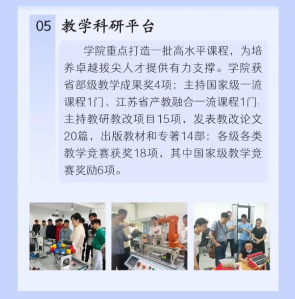 蘇州城市學(xué)院智能制造與智慧交通學(xué)院立足制造本質(zhì),緊扣智能特征,適應(yīng)智能制造發(fā)展需求,突出智慧綠色,以立德樹人為根本任務(wù),以人才培養(yǎng)為核心,致力于培養(yǎng)供需適配性高、創(chuàng)新能力強、專業(yè)技術(shù)硬的高素質(zhì)應(yīng)用型工程技術(shù)人才。為實現(xiàn)建設(shè)制造強國的戰(zhàn)略目標(biāo)、積極響應(yīng)蘇州“智造之城”強基提質(zhì)行動,賦能新質(zhì)生產(chǎn)力發(fā)展的更高追求,我們誠摯邀請廣大優(yōu)秀學(xué)子們加盟學(xué)院,一起在智能革命的浪潮中踏浪前行,盡顯我們智慧新生代的活力與風(fēng)采。