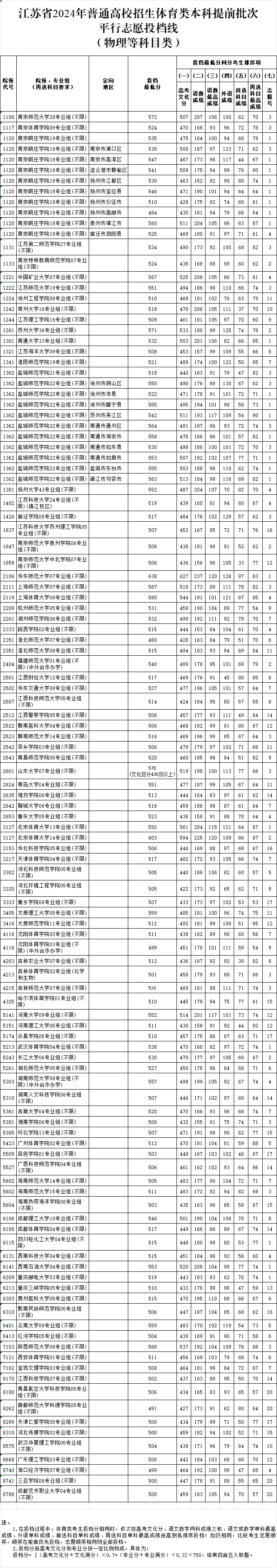 江蘇省2024年普通高校招生體育類本科提前批次平行志 愿投檔線(物理類).xlsx