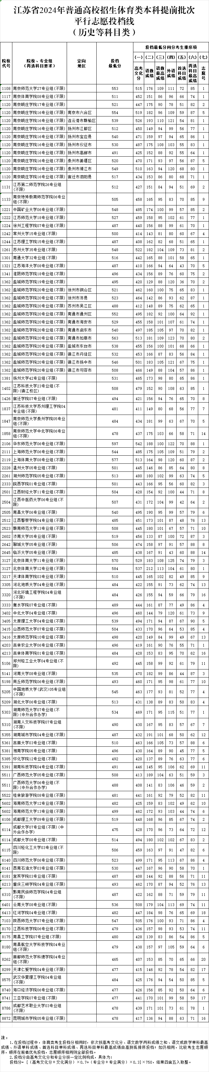 江蘇省2024年普通高校招生體育類本科提前批次平行志 愿投檔線(歷史類).xlsx