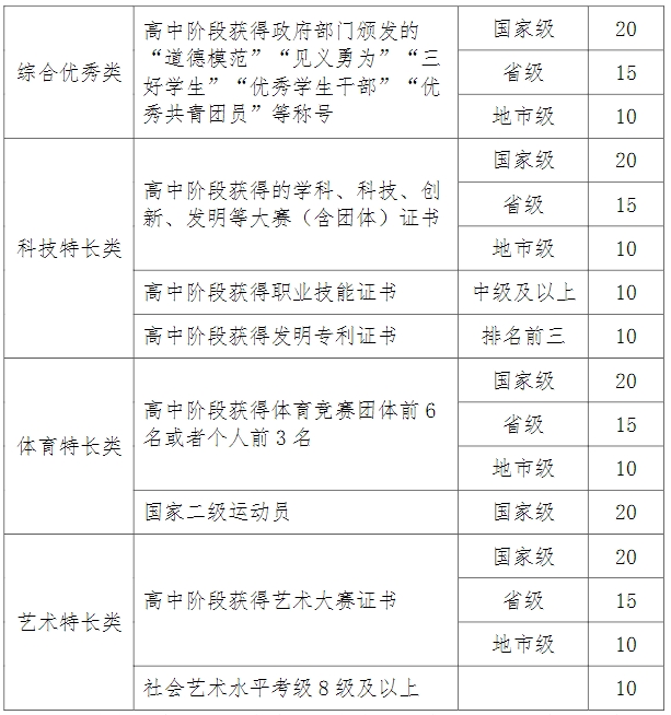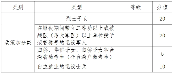 3.除了政策加分類外,其他加分類別只接受第一輪報考考生,第二輪報考考生不享受政策加分類外的加分政策;