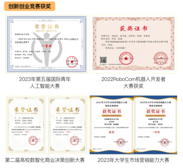 自2020年6月起,硅湖師生在創(chuàng)新創(chuàng)業(yè)類賽事中表現(xiàn)卓越,累計獲獎247項以上,獎項涵蓋國際級1項、國家級67項、省部級179項,在創(chuàng)新創(chuàng)業(yè)教研方面成果顯著,為人才培養(yǎng)提供有力支撐。