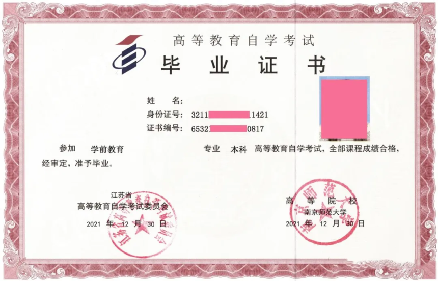 學生在校學習期滿,修完教學計劃規(guī)定的全部課程并經鑒定合格,畢業(yè)頒發(fā)由“江蘇省高等教育自考委員會”和所報高校聯(lián)合署章的相應層次自學考試畢業(yè)證書,符合學位授予條件的,授予相應學科的成人高等教育學士學位。畢業(yè)證書屬于國家認可的國民教育系列文憑,在教育部指定電子網站注冊,證書信息可在中國高等教育學生信息網(www.chsi.com.cn)上查詢。