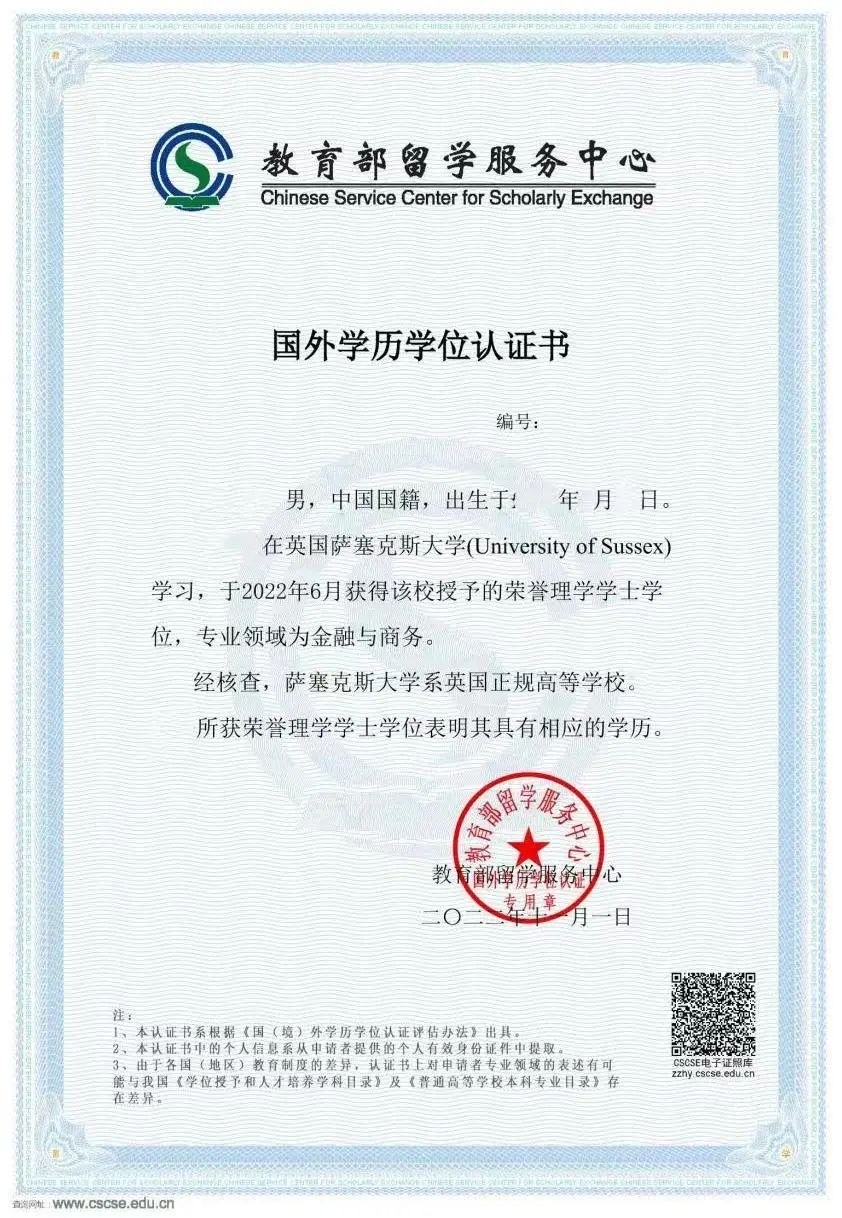 中國教育部留學服務中心認證,國家認可,可參加校內(nèi)考研,也可回國參加考公考編